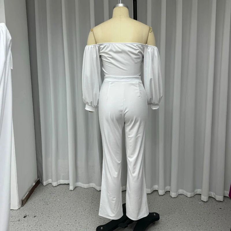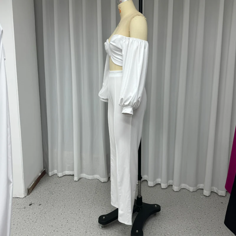Wefads-Conjunto de dos piezas con hombros descubiertos para mujer, Top corto con espalda descubierta, pantalones ajustados sueltos, color liso, moda de verano