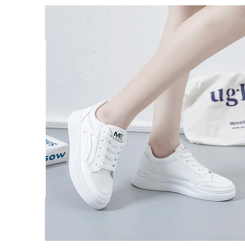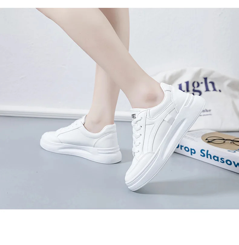 Zapatos de suela gruesa para mujer, zapatillas informales transpirables con plataforma, cabeza redonda, color blanco, primavera y otoño, 2024